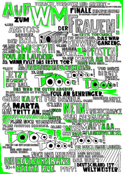 Verlacht, verboten und gefeiert. Ausstellungsbeiträge zur Geschichte des Frauenfußballs in Deutschland. 10. bis 28. Januar 2011 in Offenbach. Plakat Fan Ding